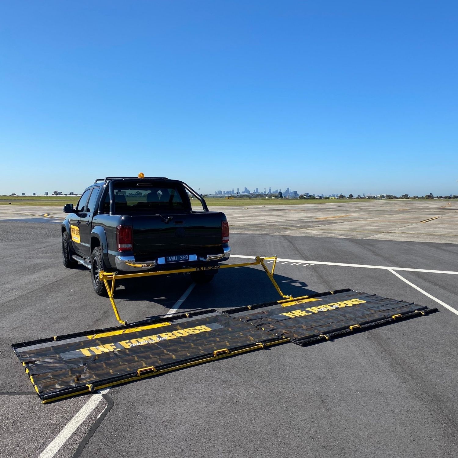 Easy to use by one person, it is simply towed by any motorised vehicle. No special licenses or skills are required. At low speeds using a compact tow vehicle, it can be used right up to and around parked aircraft. The FOD* BOSS has no motor, no noise, is simple,reliable and can’t break down.